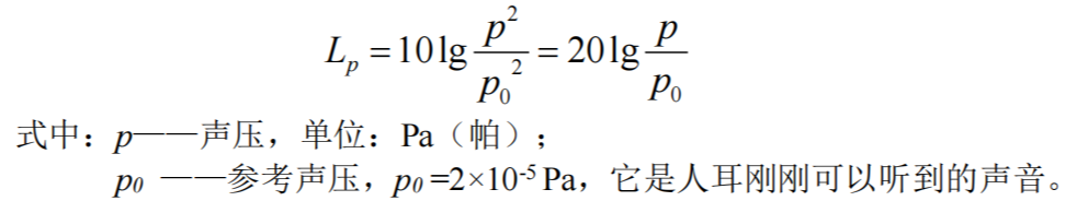 其實(shí)I為聲強(qiáng);I0為參考聲強(qiáng),一般取I0=10-12 W/m2,這是相應(yīng)參考聲壓級P0=2×10-5 Pa 時(shí)的聲強(qiáng)。一般情況下可以認(rèn)為聲壓級等于聲強(qiáng)級。